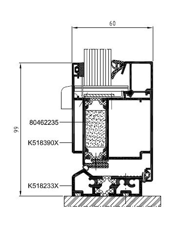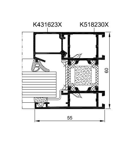 - Profily s tromi komorami, kde strednú časť tvorí izolačná komora medzi tepelnými vložkami o šírke 43 alebo 42 mm,